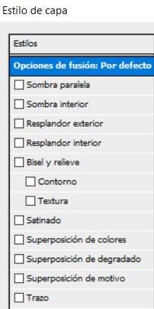 A continuación, podremos un texto plano en un lienzo y modificaremos cada una de las herramientas explicadas arriba usando el desplegable de Estilo de capa de Adobe Photoshop (Imagen 1 - a la derecha).
