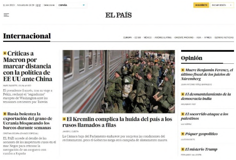 Figura 1. Ejemplo de página web con arquitectura vertical (Diario “El País”).