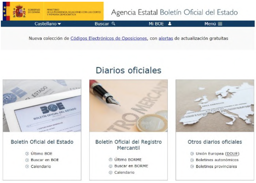 Figura 2. Ejemplo de página web con arquitectura horizontal dividida por categorías (Agencia Estatal Boletín Oficial del Estado).