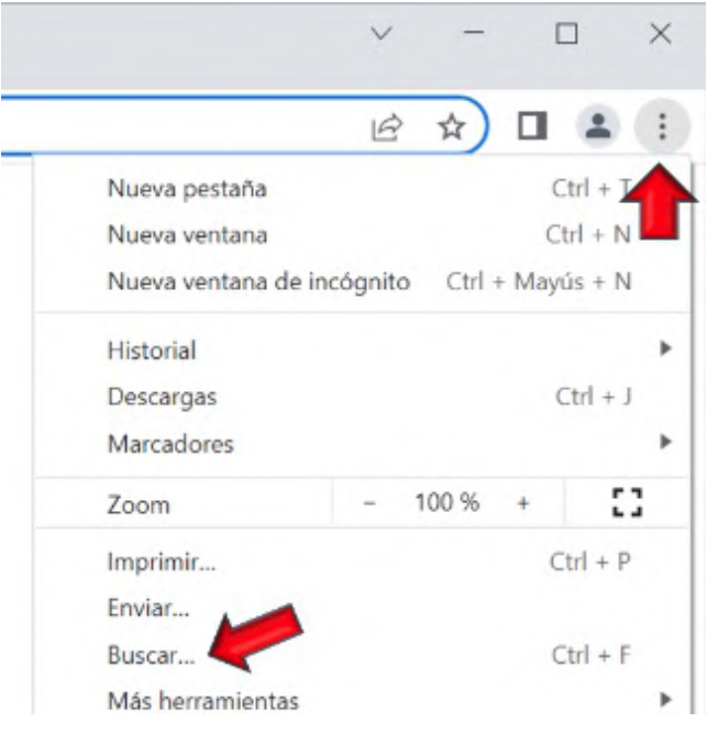 Para ello, se pueden utilizar los atajos de teclado o bien acceder a la opción de búsqueda a través de la barra de menú incorporada en el navegador.