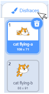 Los personajes que intervienen en un programa reciben el nombre de objetos o sprites. Si pinchas sobre el icono del gato, aparecerá una galería con múltiples personajes. Seleccionaremos como personaje al gato volador.