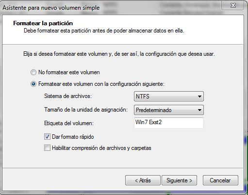 Figura 2. Opciones de formateo para una partición para el programa de Gestión de Discos de Windows. Imagen con licencia CCC obtenida de e.digitall.org.es/captura-formateo-particion