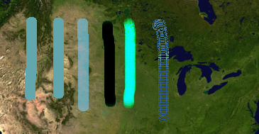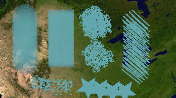 Todas las herramientas de pintura tienen algunas opciones compartidas como son modo, opacidad, pincel, tamaño, proporción de aspecto, ángulo o espaciado. A continuación describimos su funcionamiento utilizando como fondo una imagen de superficie terrestre: