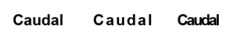 En cuanto al interletraje tracking, si expandimos la palabra “Caudal” aumentando la distancia entre caracteres o si lo comprimiésemos quedaría así: